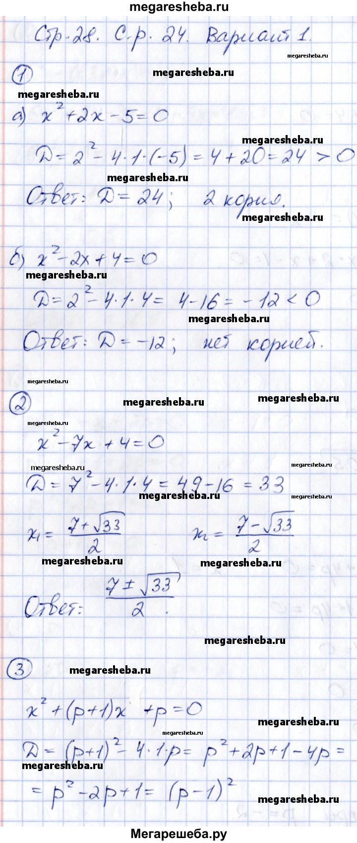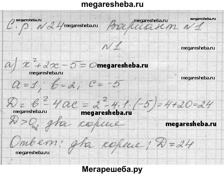 Подробный решебник (ГДЗ) по Алгебре за 8 (восьмой) класс контрольные и самостоятельные работы - готовый ответ самостоятельные работы СР-24. вариант - 1. Авторы учебника: Попов. Издательство: Экзамен 2016.