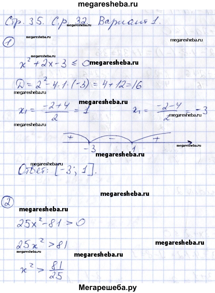 Подробный решебник (ГДЗ) по Алгебре за 8 (восьмой) класс контрольные и самостоятельные работы - готовый ответ самостоятельные работы СР-32. вариант - 1. Авторы учебника: Попов. Издательство: Экзамен 2016.