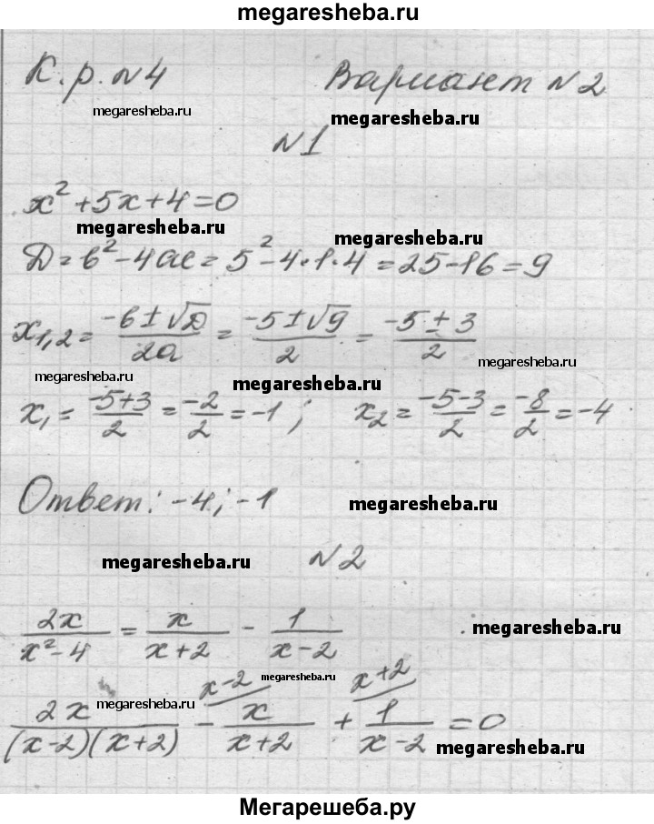 Подробный решебник (ГДЗ) по Алгебре за 8 (восьмой) класс контрольные и самостоятельные работы - готовый ответ контрольные работы КР-4. вариант - 2. Авторы учебника: Попов. Издательство: Экзамен 2016.