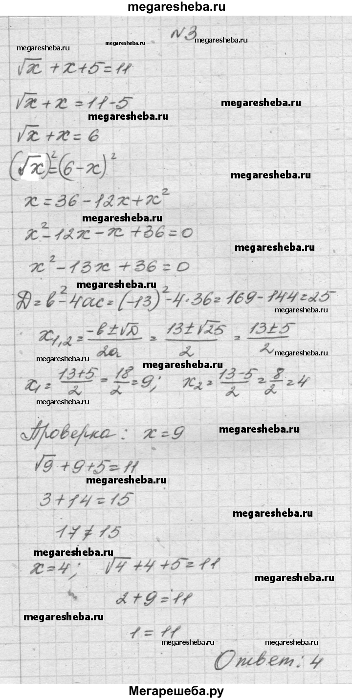 Подробный решебник (ГДЗ) по Алгебре за 8 (восьмой) класс контрольные и самостоятельные работы - готовый ответ контрольные работы КР-4. вариант - 3. Авторы учебника: Попов. Издательство: Экзамен 2016.