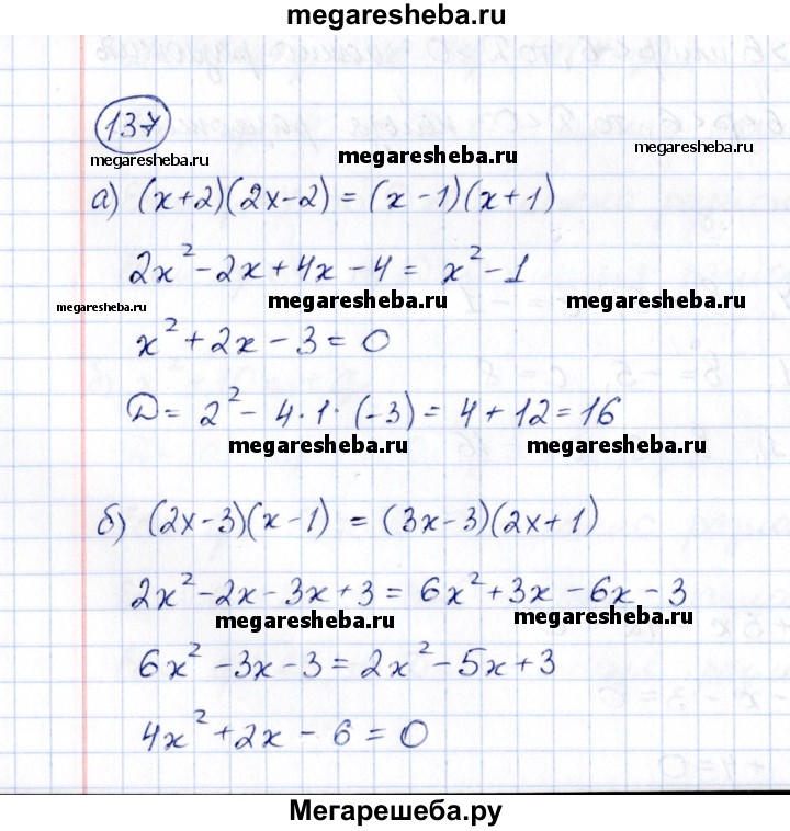 Подробный решебник (ГДЗ) по Алгебре за 8 (восьмой) класс рабочая тетрадь - готовый ответ часть 1 (параграф) дополнения 4 (упражнение) - 137. Авторы учебника: Потапов, Шевкин. Издательство: Просвещение 2020.