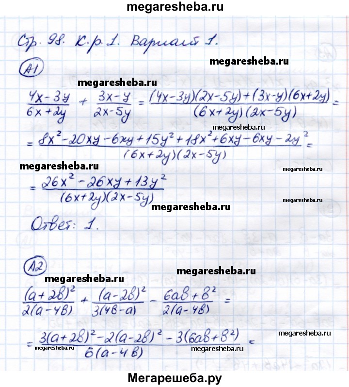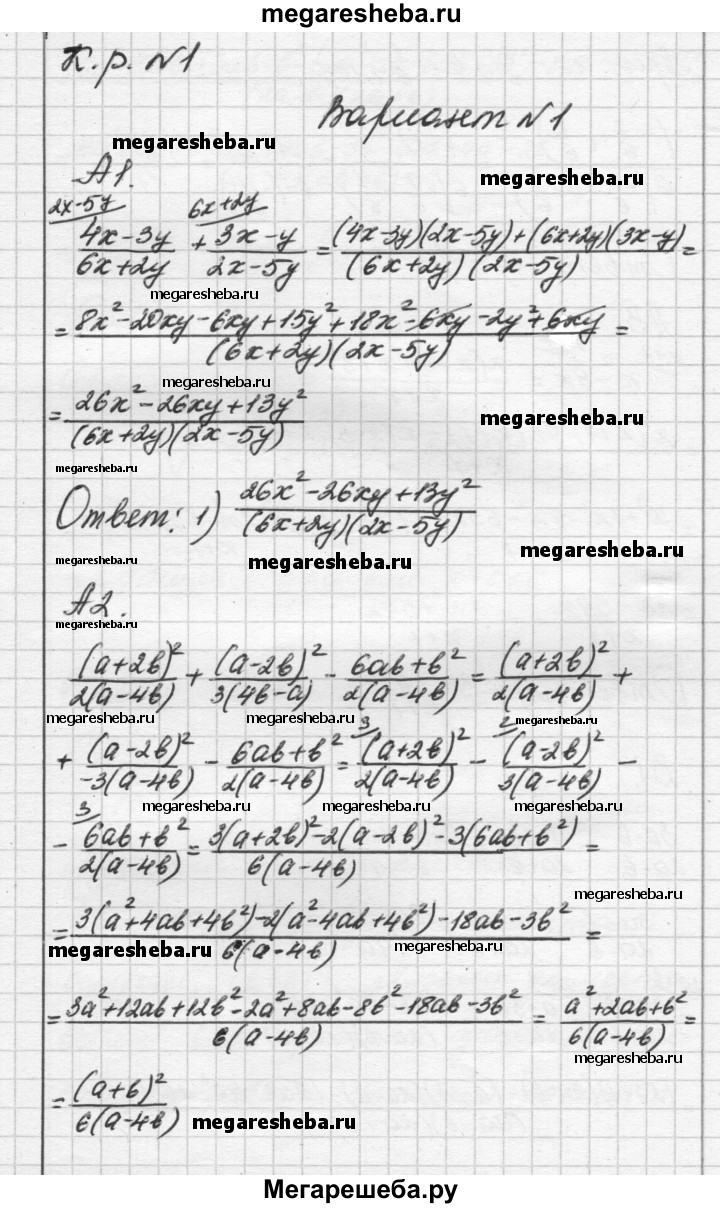 Подробный решебник (ГДЗ) по Алгебре за 8 (восьмой) класс самостоятельные и контрольные работы - готовый ответ контрольные работы КР-1 - Вариант 1. Авторы учебника: Глазков, Гаиашвили. Издательство: Экзамен 2012.