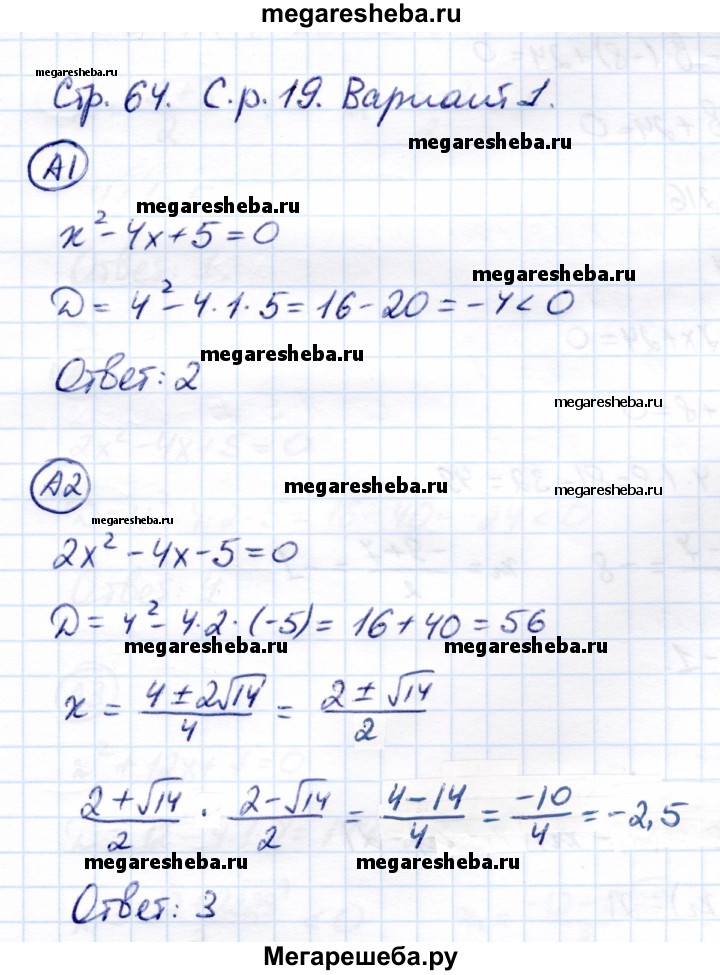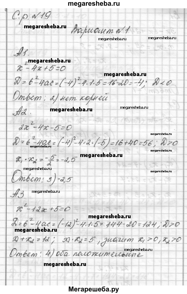 ГДЗ по алгебре 8 класс Глазков самостоятельные и контрольные работы самостоятельные работы СР-19 - Вариант 1