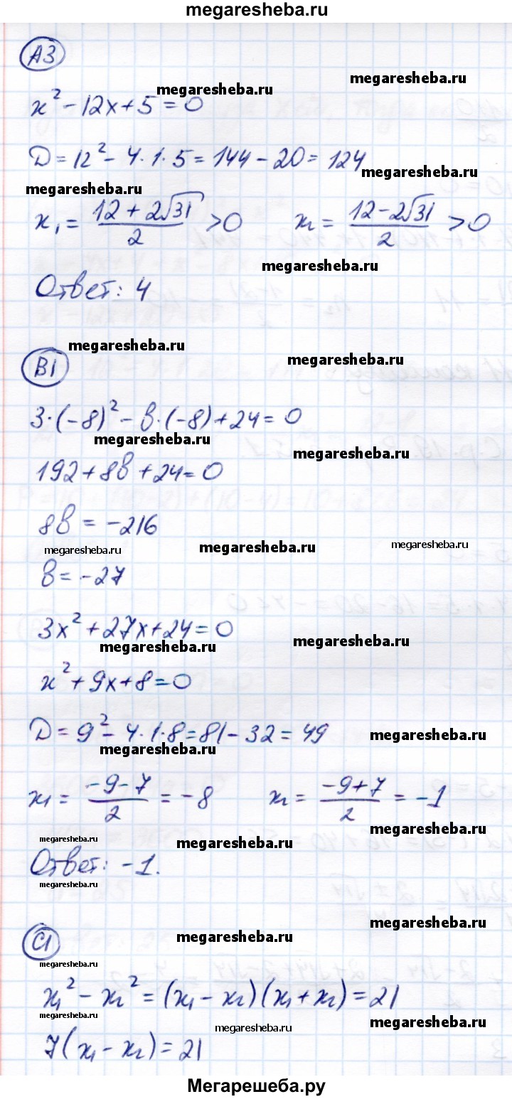 Подробный решебник (ГДЗ) по Алгебре за 8 (восьмой) класс самостоятельные и контрольные работы - готовый ответ самостоятельные работы СР-19 - Вариант 1. Авторы учебника: Глазков, Гаиашвили. Издательство: Экзамен 2012.