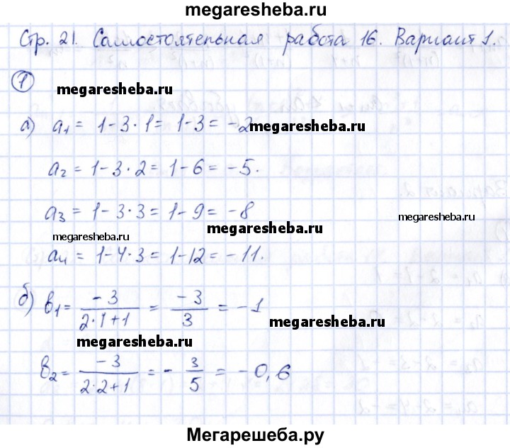 Подробный решебник (ГДЗ) по Алгебре за 9 (девятый) класс контрольные и самостоятельные работы - готовый ответ самостоятельные работы СР-16 - Вариант 1. Авторы учебника: Попов. Издательство: Экзамен 2011.