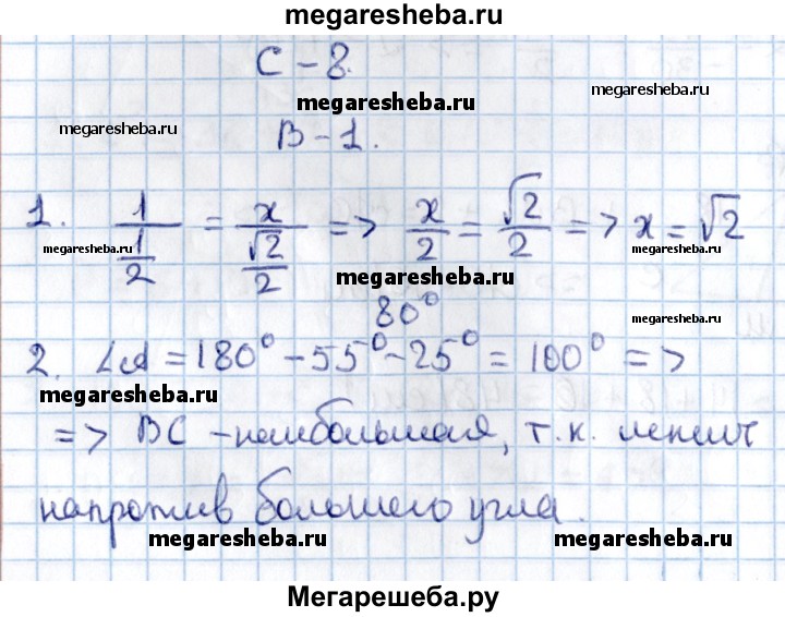 Подробный решебник (ГДЗ) по Алгебре за 9 (девятый) класс контрольные и самостоятельные работы - готовый ответ геометрия Погорелов самостоятельные работы С-8 - Вариант 1. Авторы учебника: Журавлев, Малышева, Свентковский. Издательство: Экзамен 2016.