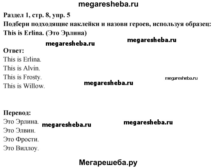 Подробный решебник (ГДЗ) по Английскому языку за 1 (первый) класс рабочая тетрадь Starlight - готовый ответ страница - 8. Авторы учебника: Баранова, Дули, Копылова. Издательство: Просвещение 2017.
