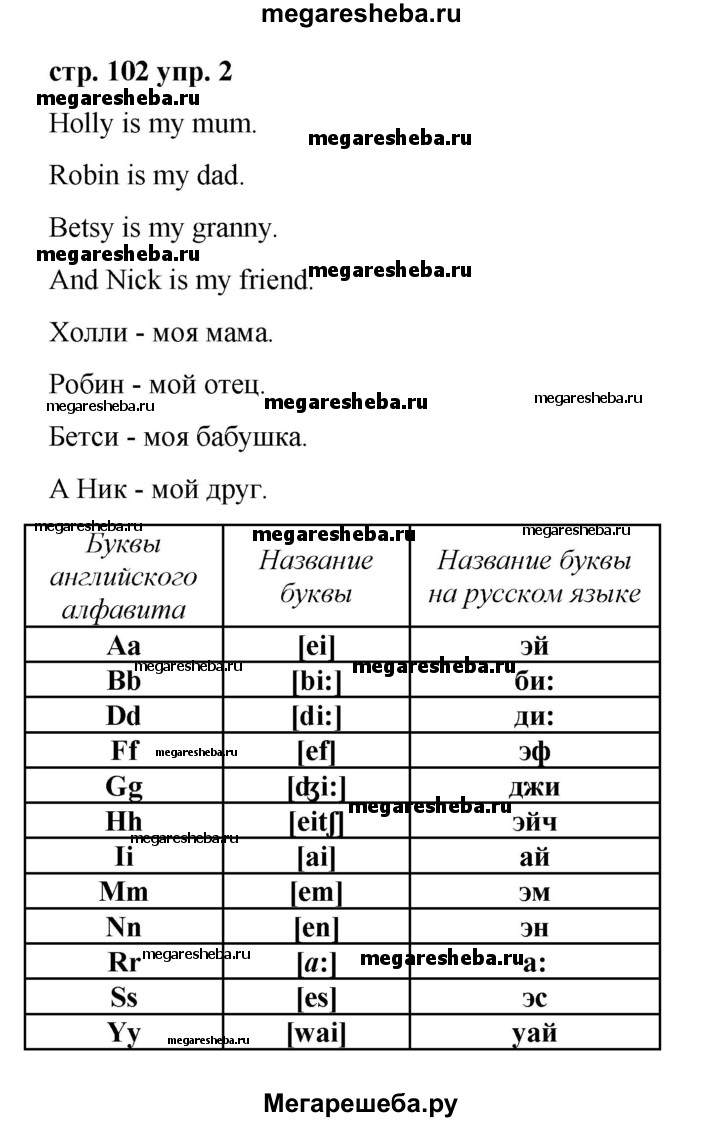 Подробный решебник (ГДЗ) по Английскому языку за 2 (второй) класс - готовый ответ часть 1. страница - 102. Авторы учебника: Афанасьева, Баранова, Михеева. Издательство: Просвещение 2023.