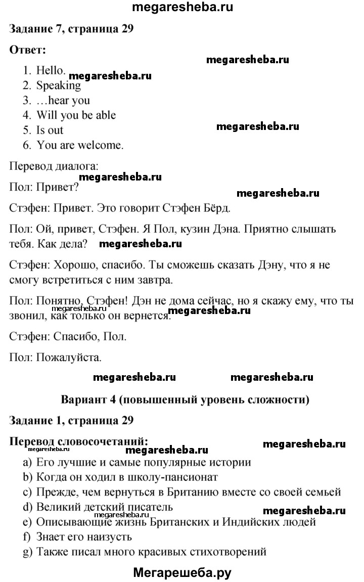 Подробный решебник (ГДЗ) по Английскому языку за 9 (девятый) класс контрольные работы Rainbow - готовый ответ страница - 29. Авторы учебника: Афанасьева, Михеева, Баранова. Издательство: Дрофа 2020.