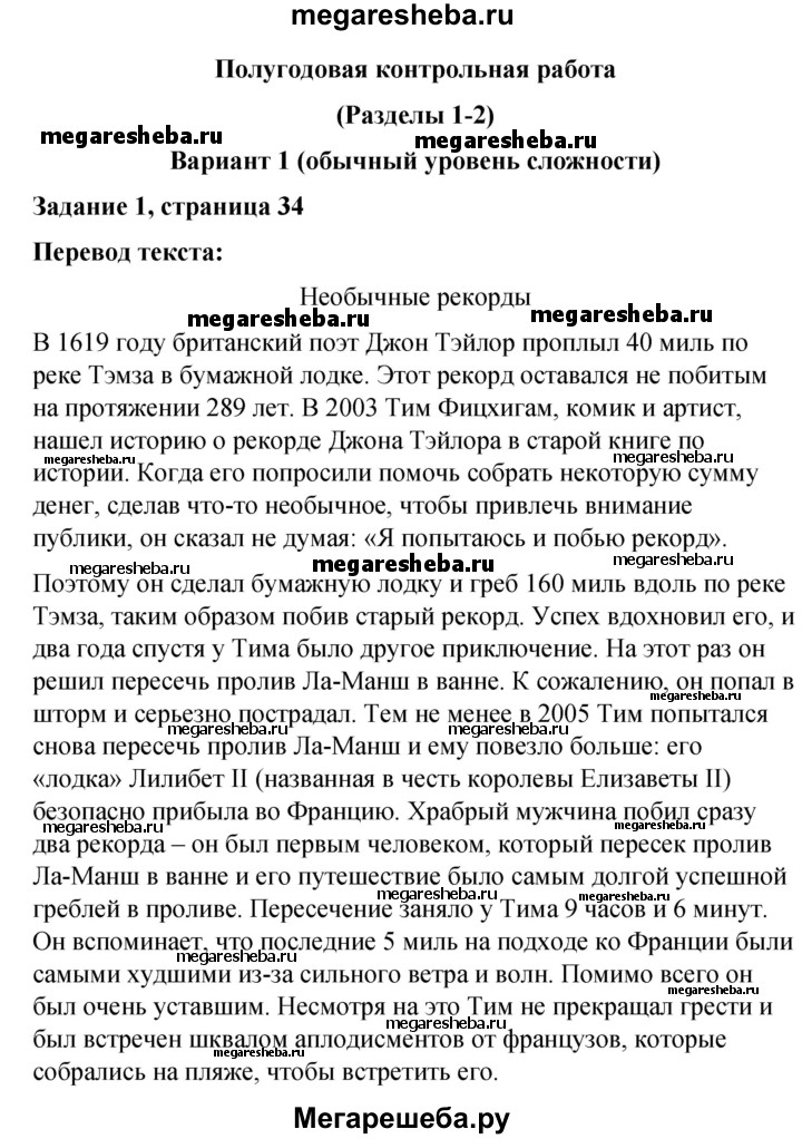 Подробный решебник (ГДЗ) по Английскому языку за 9 (девятый) класс контрольные работы Rainbow - готовый ответ страница - 34. Авторы учебника: Афанасьева, Михеева, Баранова. Издательство: Дрофа 2020.
