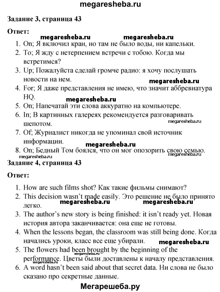 Подробный решебник (ГДЗ) по Английскому языку за 9 (девятый) класс контрольные работы Rainbow - готовый ответ страница - 43. Авторы учебника: Афанасьева, Михеева, Баранова. Издательство: Дрофа 2020.