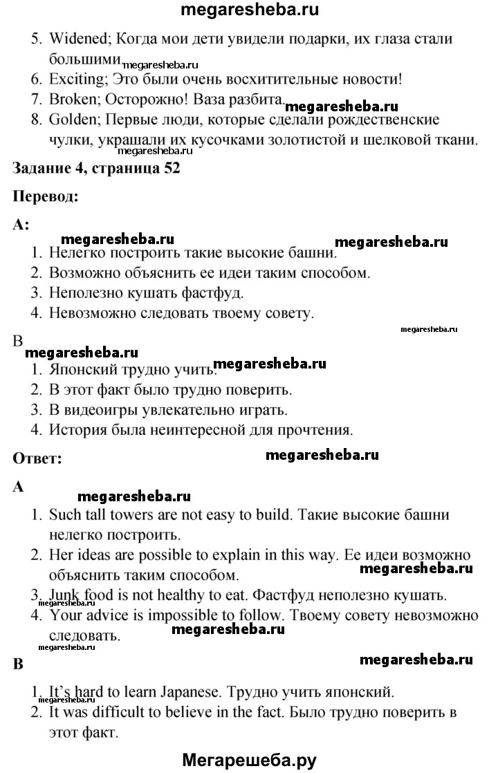 Подробный решебник (ГДЗ) по Английскому языку за 9 (девятый) класс контрольные работы Rainbow - готовый ответ страница - 52. Авторы учебника: Афанасьева, Михеева, Баранова. Издательство: Дрофа 2020.