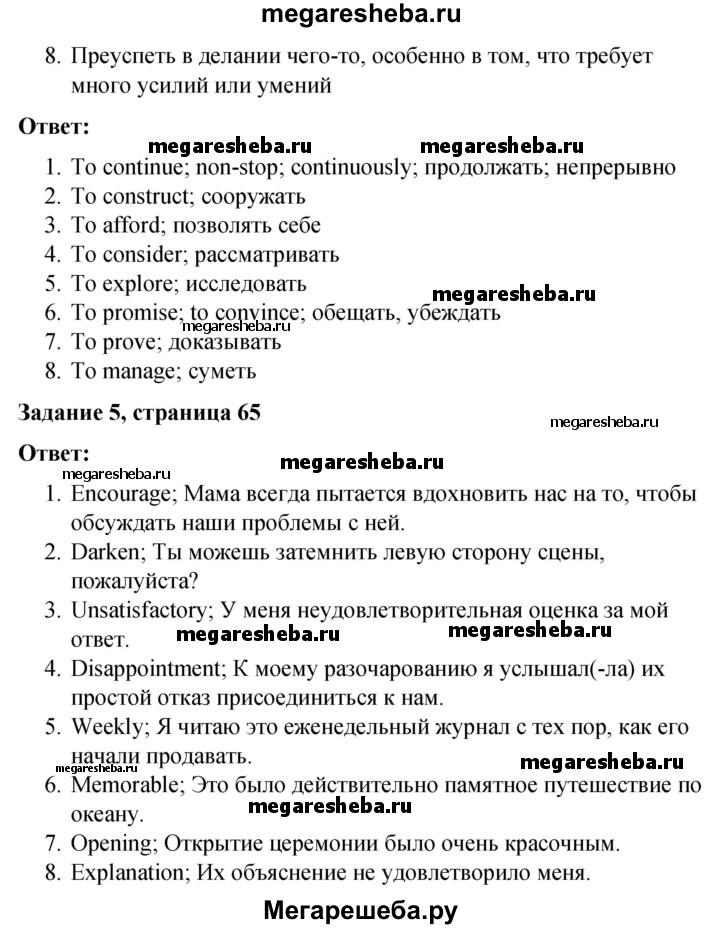 ГДЗ по английскому языку 9 класс Афанасьева контрольные работы Rainbow страница - 65