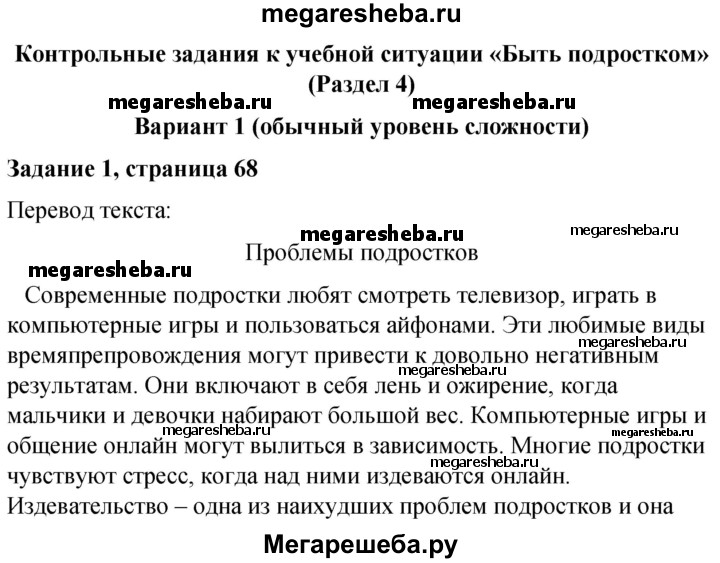 Подробный решебник (ГДЗ) по Английскому языку за 9 (девятый) класс контрольные работы Rainbow - готовый ответ страница - 68. Авторы учебника: Афанасьева, Михеева, Баранова. Издательство: Дрофа 2020.