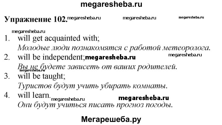 Подробный решебник (ГДЗ) по Английскому языку за 9 (девятый) класс тетрадь для повторения и закрепления - готовый ответ упражнение - 102. Авторы учебника: Котлярова, Мельник. Издательство: Попурри 2019.