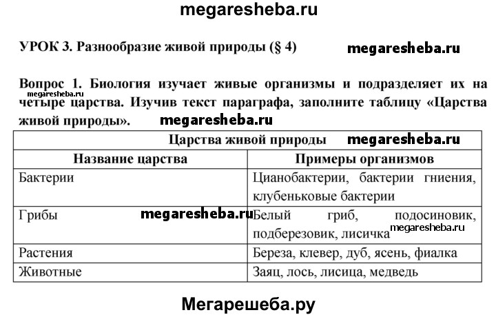 ГДЗ по биологии 5 класс Пасечник рабочая тетрадь урок 3 - 1