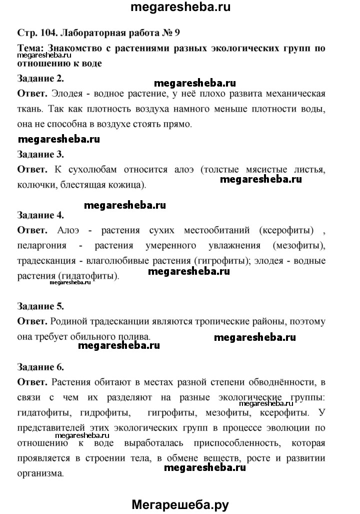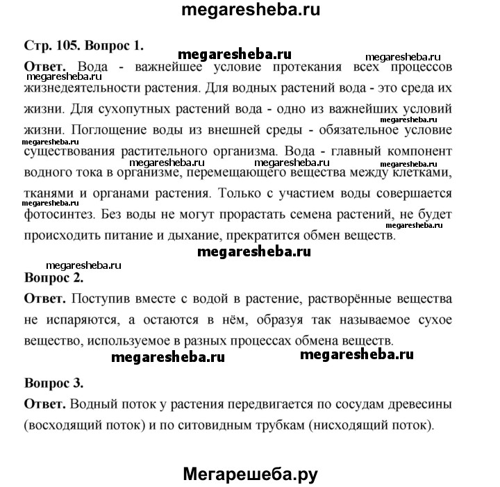 Подробный решебник (ГДЗ) по Биологии за 6 (шестой) класс - готовый ответ параграф 17 (страница) - 105. Авторы учебника: Пономарёва, Корнилова, Базовый уровень. Издательство: Просвещение 2023.