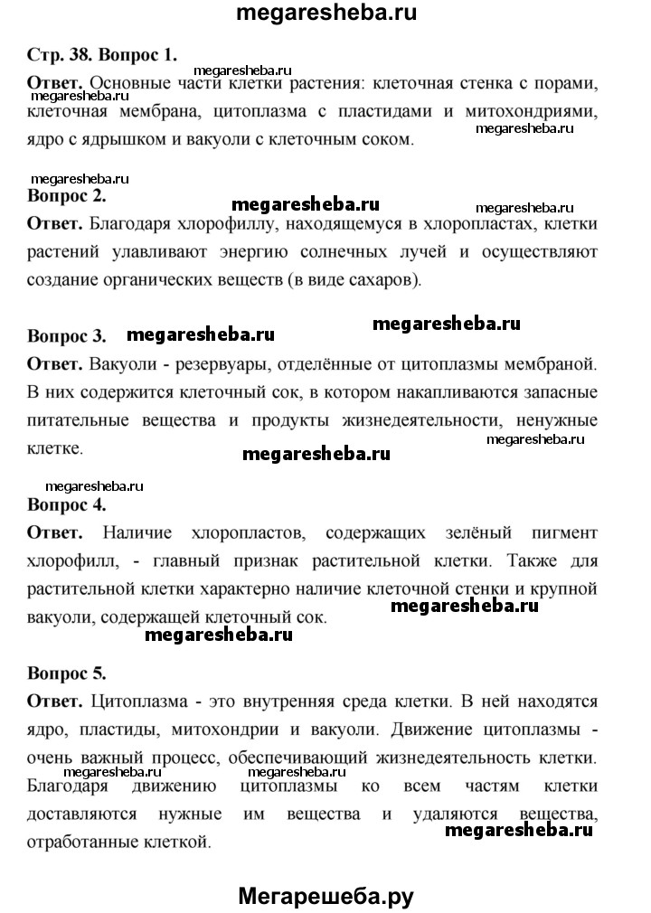 Подробный решебник (ГДЗ) по Биологии за 6 (шестой) класс - готовый ответ параграф 5 (страница) - 38. Авторы учебника: Пономарёва, Корнилова, Базовый уровень. Издательство: Просвещение 2023.