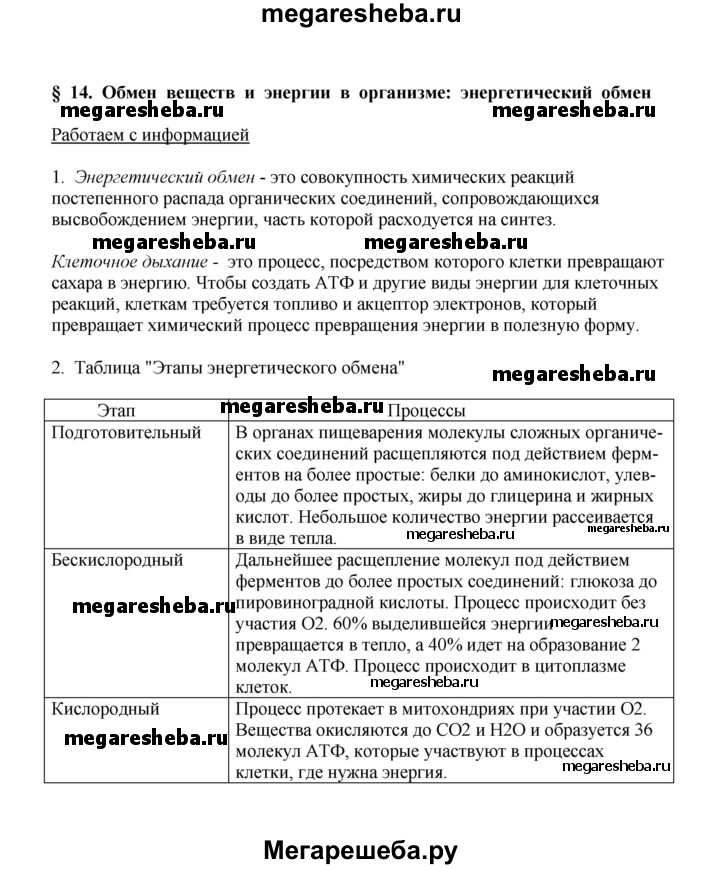 ГДЗ по биологии 9 класс Касперская рабочая тетрадь параграф - 14