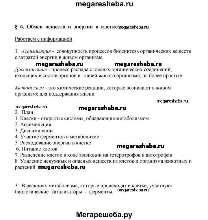 ГДЗ по биологии 9 класс Касперская рабочая тетрадь параграф - 6