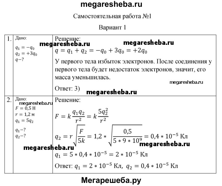 Подробный решебник (ГДЗ) по Физике за 10 (десятый) класс самостоятельные и контрольные работы - готовый ответ электродинамика электростатика СР-1. вариант - 1. Авторы учебника: Ерюткин, Ерюткина, Базовый и углубленный уровень. Издательство: Просвещение 2019.