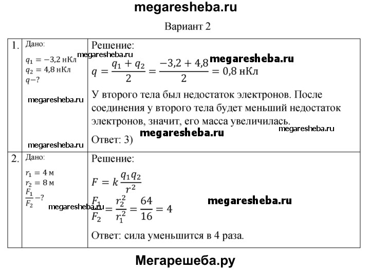 ГДЗ по физике 10 класс Ерюткин самостоятельные и контрольные работы Базовый и углубленный уровень электродинамика электростатика СР-1. вариант - 2