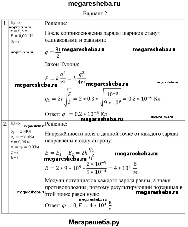 ГДЗ по физике 10 класс Ерюткин самостоятельные и контрольные работы Базовый и углубленный уровень электродинамика контрольная работа. вариант - 2