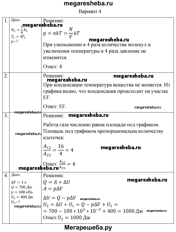 ГДЗ по физике 10 класс Ерюткин самостоятельные и контрольные работы Базовый и углубленный уровень молекулярная физика. тепловые явления контрольная работа. вариант - 4