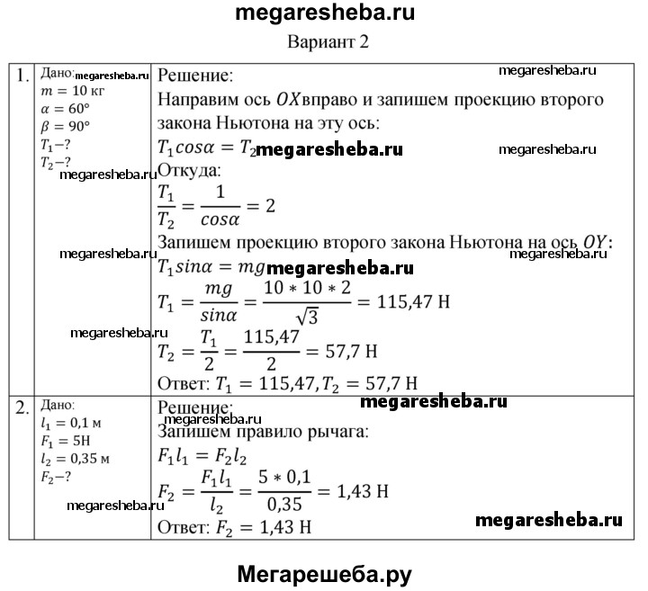 ГДЗ по физике 10 класс Ерюткин самостоятельные и контрольные работы Базовый и углубленный уровень механика статика и гидромеханика СР-1. вариант - 2