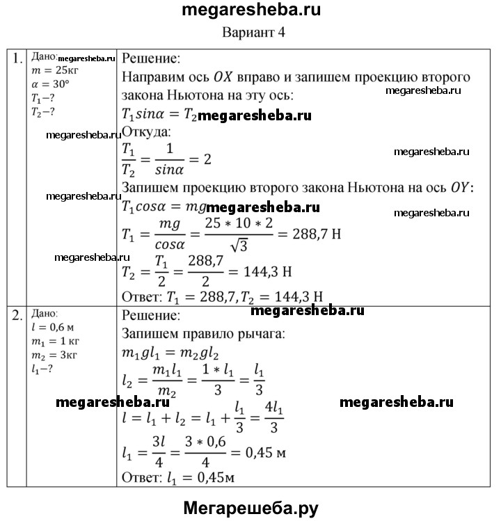 ГДЗ по физике 10 класс Ерюткин самостоятельные и контрольные работы Базовый и углубленный уровень механика статика и гидромеханика СР-1. вариант - 4