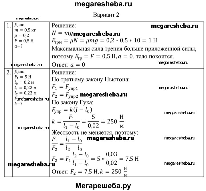 Подробный решебник (ГДЗ) по Физике за 10 (десятый) класс самостоятельные и контрольные работы - готовый ответ механика динамика СР-10. вариант - 2. Авторы учебника: Ерюткин, Ерюткина, Базовый и углубленный уровень. Издательство: Просвещение 2019.