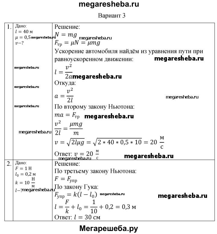Подробный решебник (ГДЗ) по Физике за 10 (десятый) класс самостоятельные и контрольные работы - готовый ответ механика динамика СР-10. вариант - 3. Авторы учебника: Ерюткин, Ерюткина, Базовый и углубленный уровень. Издательство: Просвещение 2019.