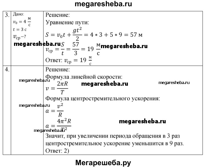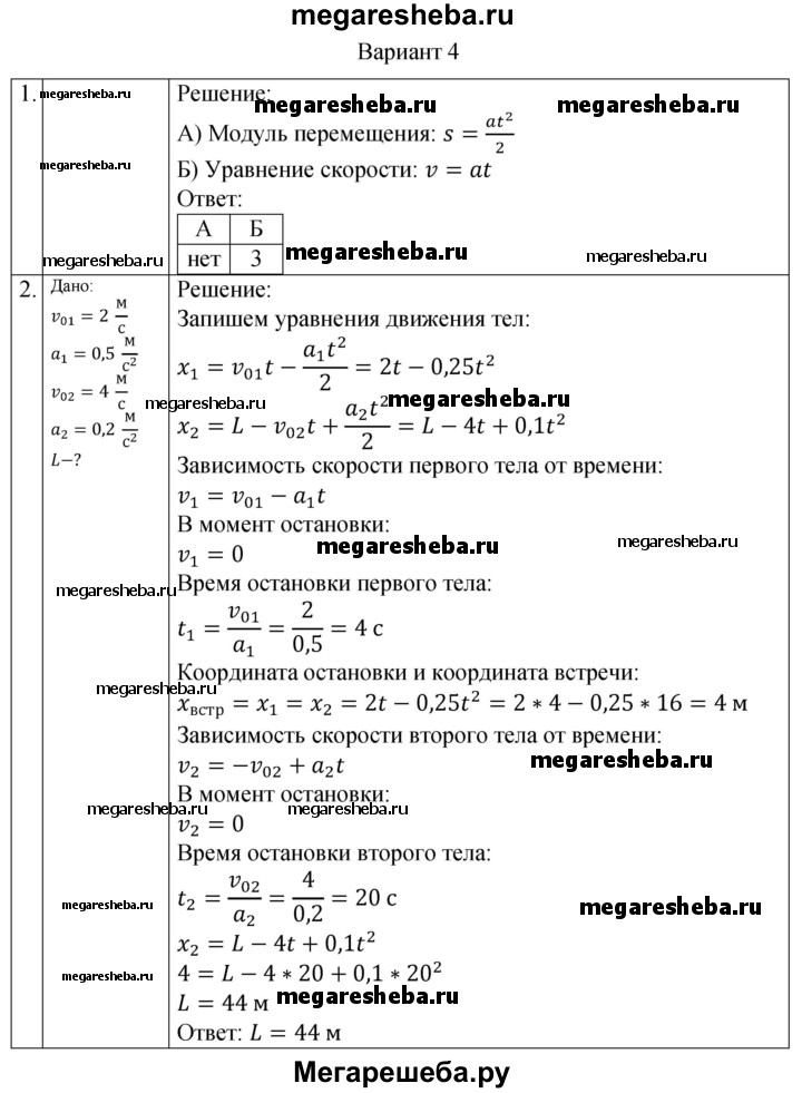ГДЗ по физике 10 класс Ерюткин самостоятельные и контрольные работы Базовый и углубленный уровень механика кинематика контрольная работа. вариант - 4