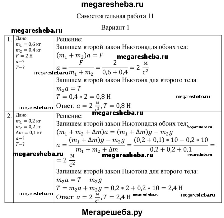 ГДЗ по физике 10 класс Ерюткин самостоятельные и контрольные работы Базовый и углубленный уровень механика динамика СР-11. вариант - 1