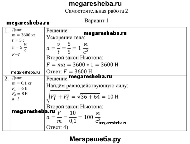 Подробный решебник (ГДЗ) по Физике за 10 (десятый) класс самостоятельные и контрольные работы - готовый ответ механика динамика СР-2. вариант - 1. Авторы учебника: Ерюткин, Ерюткина, Базовый и углубленный уровень. Издательство: Просвещение 2019.