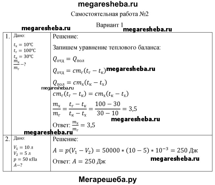 Подробный решебник (ГДЗ) по Физике за 10 (десятый) класс самостоятельные и контрольные работы - готовый ответ молекулярная физика. тепловые явления основы термодинамики СР-2. вариант - 1. Авторы учебника: Ерюткин, Ерюткина, Базовый и углубленный уровень. Издательство: Просвещение 2019.