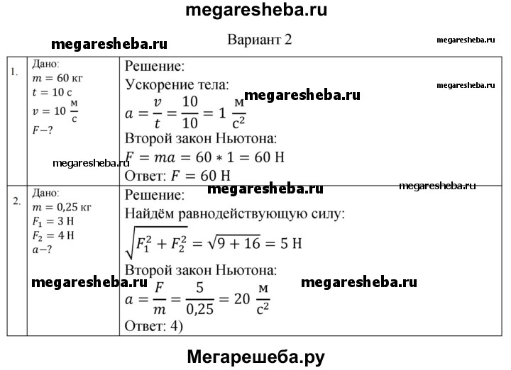 Подробный решебник (ГДЗ) по Физике за 10 (десятый) класс самостоятельные и контрольные работы - готовый ответ механика динамика СР-2. вариант - 2. Авторы учебника: Ерюткин, Ерюткина, Базовый и углубленный уровень. Издательство: Просвещение 2019.