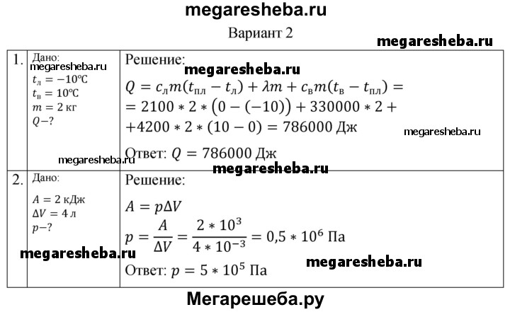 Подробный решебник (ГДЗ) по Физике за 10 (десятый) класс самостоятельные и контрольные работы - готовый ответ молекулярная физика. тепловые явления основы термодинамики СР-2. вариант - 2. Авторы учебника: Ерюткин, Ерюткина, Базовый и углубленный уровень. Издательство: Просвещение 2019.