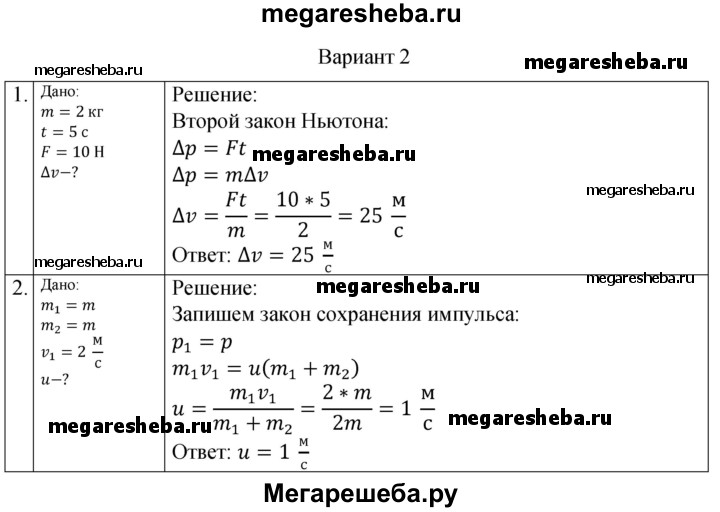 Подробный решебник (ГДЗ) по Физике за 10 (десятый) класс самостоятельные и контрольные работы - готовый ответ механика законы сохранения в механике СР-2. вариант - 2. Авторы учебника: Ерюткин, Ерюткина, Базовый и углубленный уровень. Издательство: Просвещение 2019.