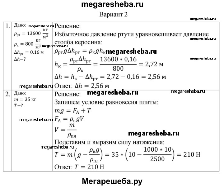 Подробный решебник (ГДЗ) по Физике за 10 (десятый) класс самостоятельные и контрольные работы - готовый ответ механика статика и гидромеханика СР-2. вариант - 2. Авторы учебника: Ерюткин, Ерюткина, Базовый и углубленный уровень. Издательство: Просвещение 2019.