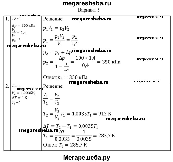 ГДЗ по физике 10 класс Ерюткин самостоятельные и контрольные работы Базовый и углубленный уровень молекулярная физика. тепловые явления основы МКТ СР-3. вариант - 5