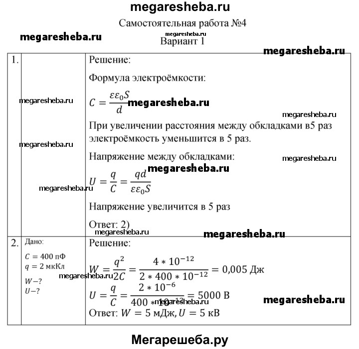Подробный решебник (ГДЗ) по Физике за 10 (десятый) класс самостоятельные и контрольные работы - готовый ответ электродинамика электростатика СР-4. вариант - 1. Авторы учебника: Ерюткин, Ерюткина, Базовый и углубленный уровень. Издательство: Просвещение 2019.