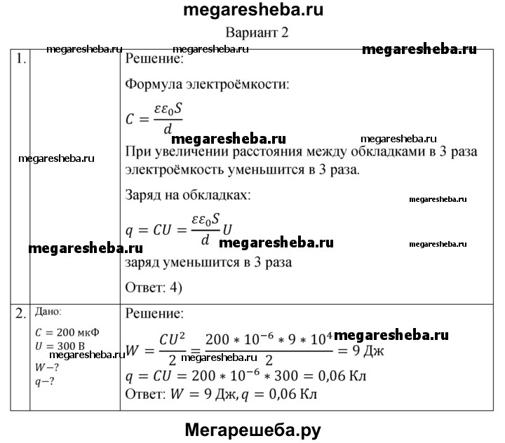 Подробный решебник (ГДЗ) по Физике за 10 (десятый) класс самостоятельные и контрольные работы - готовый ответ электродинамика электростатика СР-4. вариант - 2. Авторы учебника: Ерюткин, Ерюткина, Базовый и углубленный уровень. Издательство: Просвещение 2019.