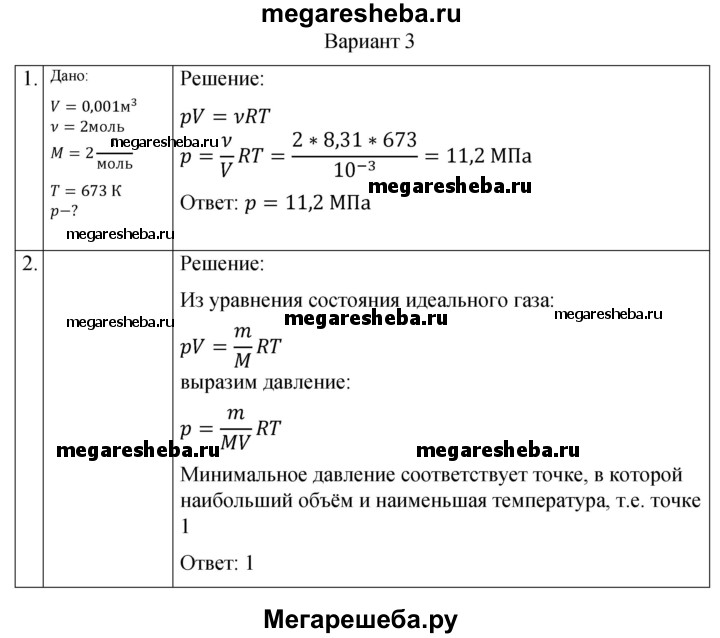 ГДЗ по физике 10 класс Ерюткин самостоятельные и контрольные работы Базовый и углубленный уровень молекулярная физика. тепловые явления основы МКТ СР-4. вариант - 3