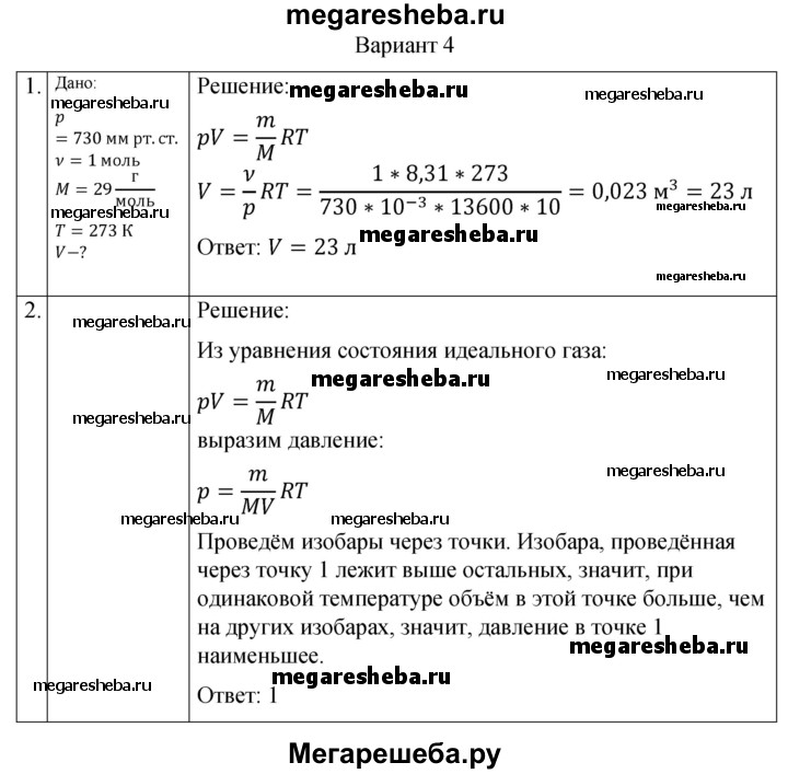 ГДЗ по физике 10 класс Ерюткин самостоятельные и контрольные работы Базовый и углубленный уровень молекулярная физика. тепловые явления основы МКТ СР-4. вариант - 4