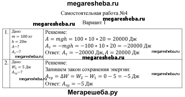 Подробный решебник (ГДЗ) по Физике за 10 (десятый) класс самостоятельные и контрольные работы - готовый ответ механика законы сохранения в механике СР-4. вариант - 1. Авторы учебника: Ерюткин, Ерюткина, Базовый и углубленный уровень. Издательство: Просвещение 2019.