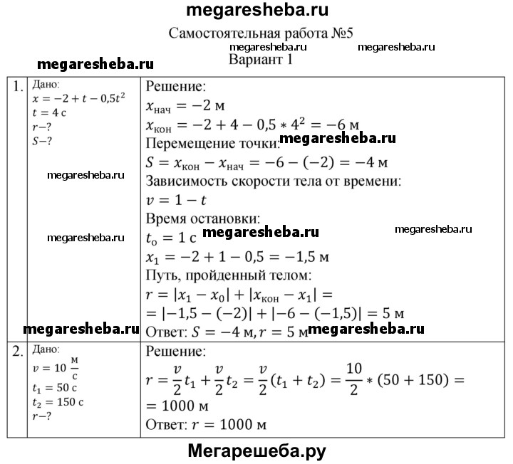 ГДЗ по физике 10 класс Ерюткин самостоятельные и контрольные работы Базовый и углубленный уровень механика кинематика СР-5. вариант - 1