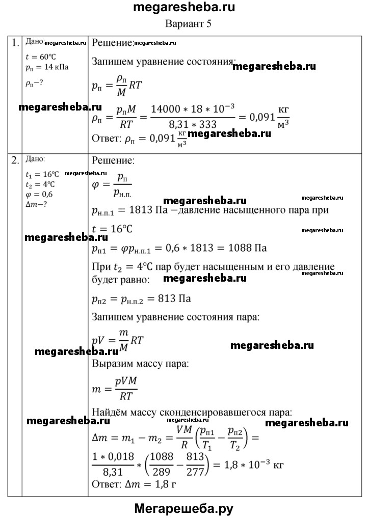 ГДЗ по физике 10 класс Ерюткин самостоятельные и контрольные работы Базовый и углубленный уровень молекулярная физика. тепловые явления основы МКТ СР-5. вариант - 5