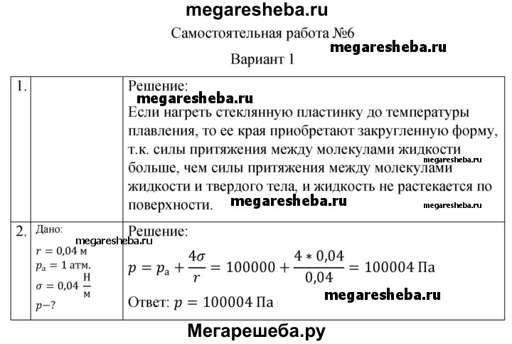 Подробный решебник (ГДЗ) по Физике за 10 (десятый) класс самостоятельные и контрольные работы - готовый ответ молекулярная физика. тепловые явления основы МКТ СР-6. вариант - 1. Авторы учебника: Ерюткин, Ерюткина, Базовый и углубленный уровень. Издательство: Просвещение 2019.