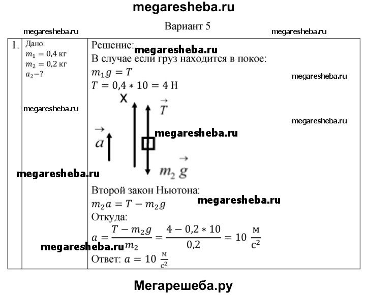 ГДЗ по физике 10 класс Ерюткин самостоятельные и контрольные работы Базовый и углубленный уровень механика динамика СР-6. вариант - 5